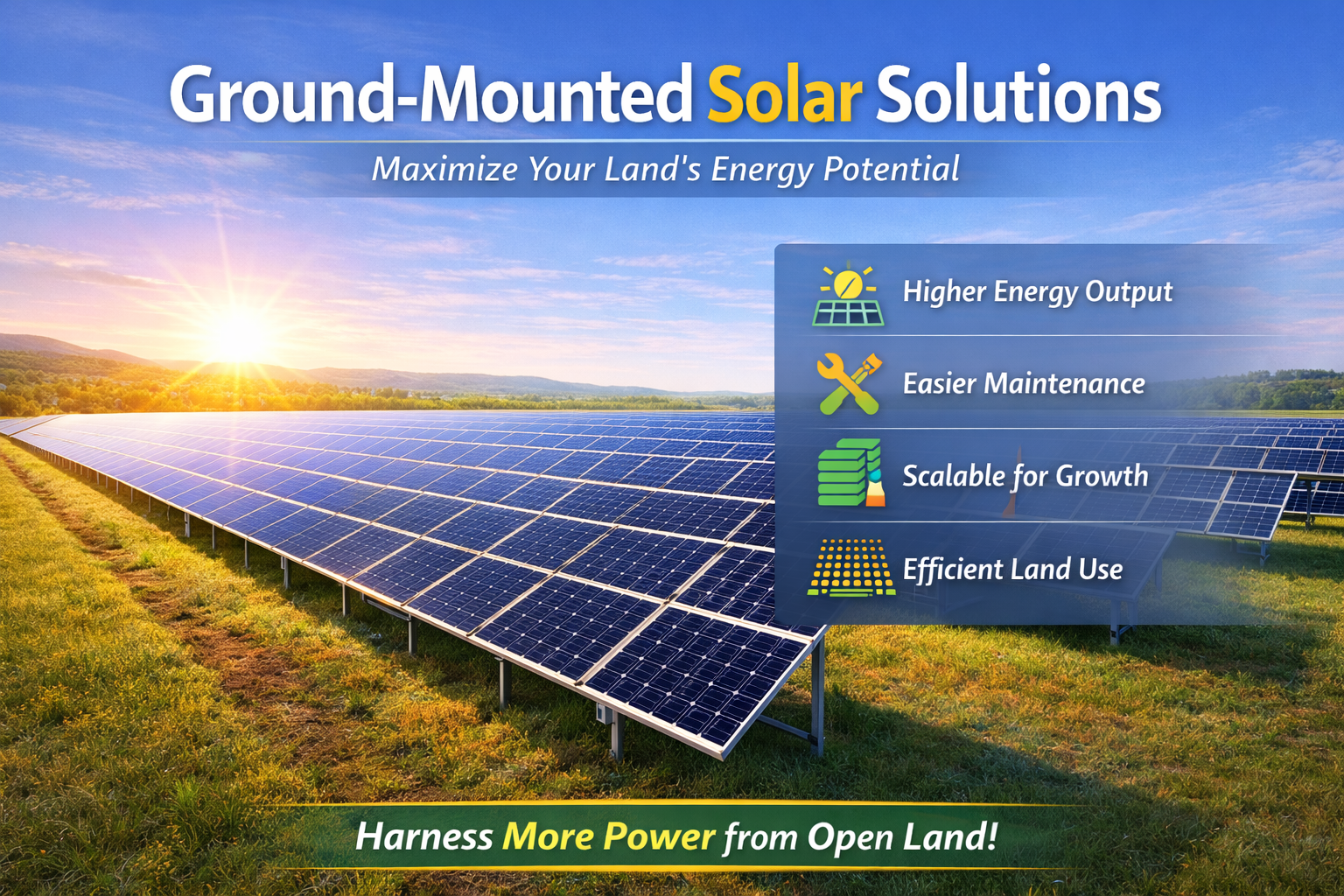 Unlock the full potential of your land with Solar Earth’s ground-mounted solar solutions. Designed for large open areas, these systems deliver high-capacity energy generation while offering flexibility for expansion and easy upkeep.